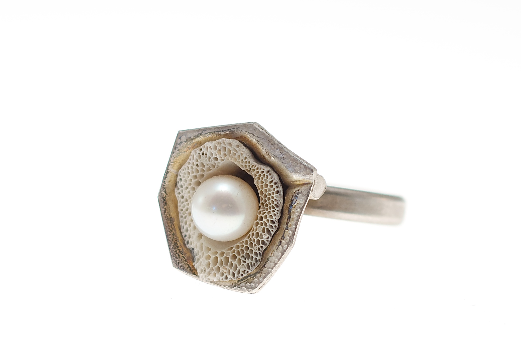 So entstehen interessante und einzigartige Arbeiten, die elegant, extravagant und organisch wirken. Es sind künstlerische Arbeiten, welche durch die Wahl unterschiedlicher Materialien und der Anwendung experimenteller Techniken, den Anspruch erheben mehr Kunstobjekte als gewöhnliche Schmuckstücke zu sein.